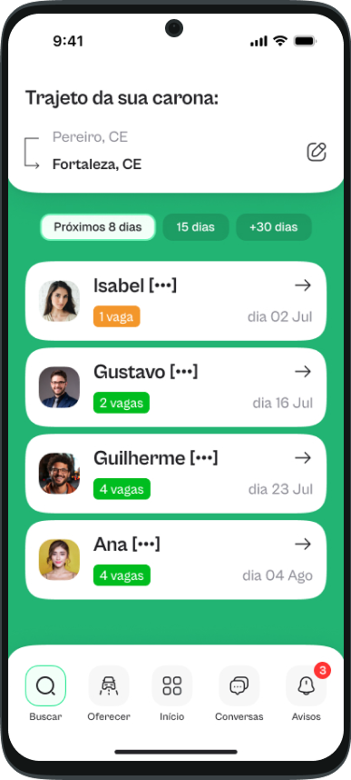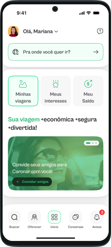 Convide seus amigos para Caronar com você!